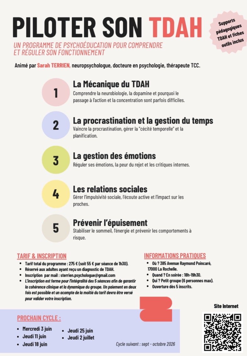 Docteur en psychologie Psychologue TCC Neuropsychologue - Psychologue clinicienne | 0698870477Depuis novembre 2025, je ne réalise plus de bilans cognitifs ou TDAH.