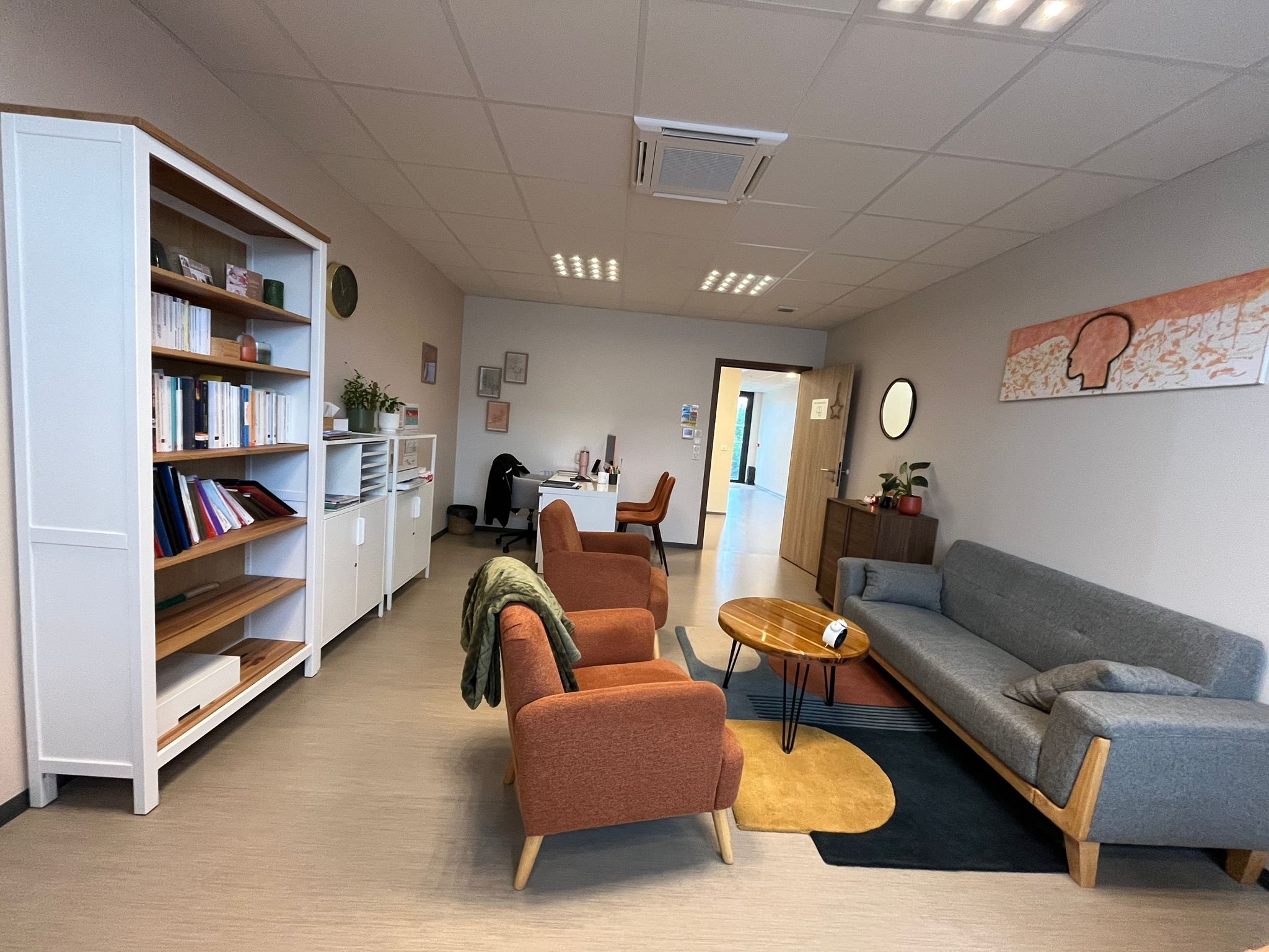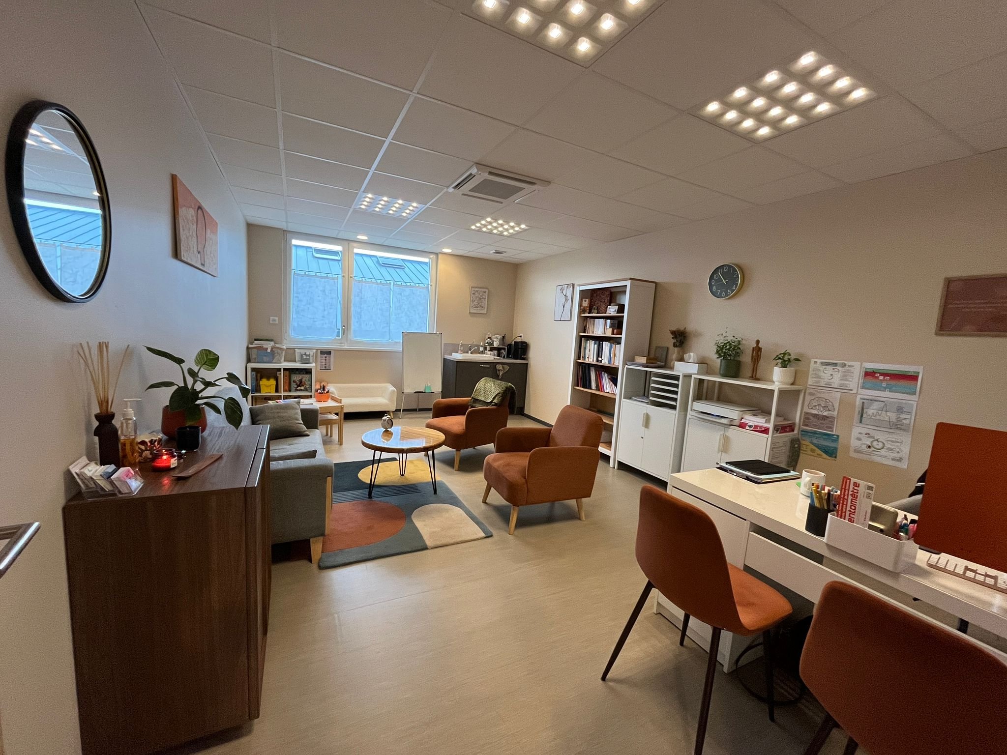 La salle d'attente du cabinet se situe au RDC de la maison de santé à gauche après l'entrée.